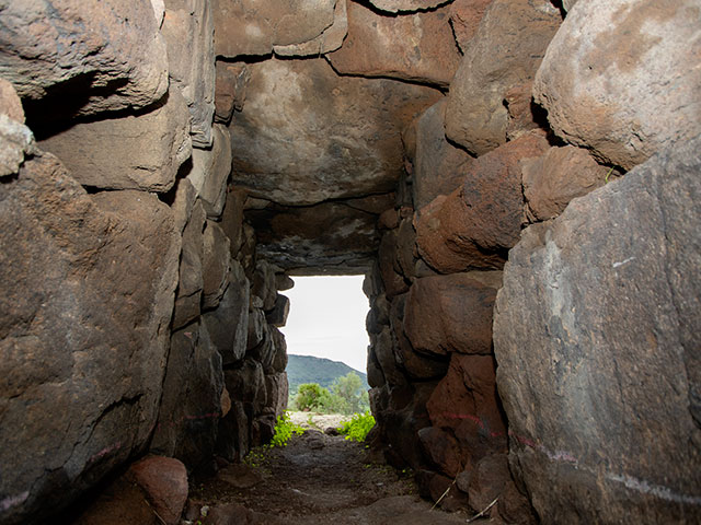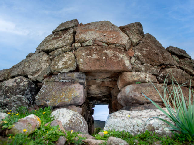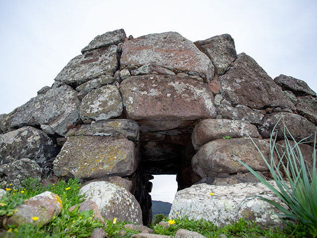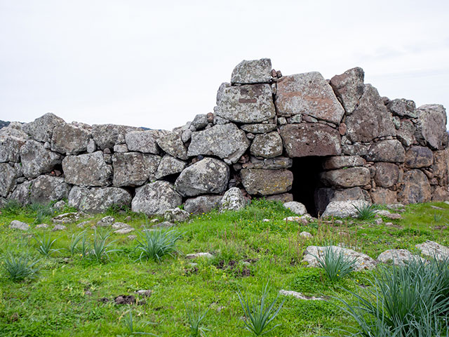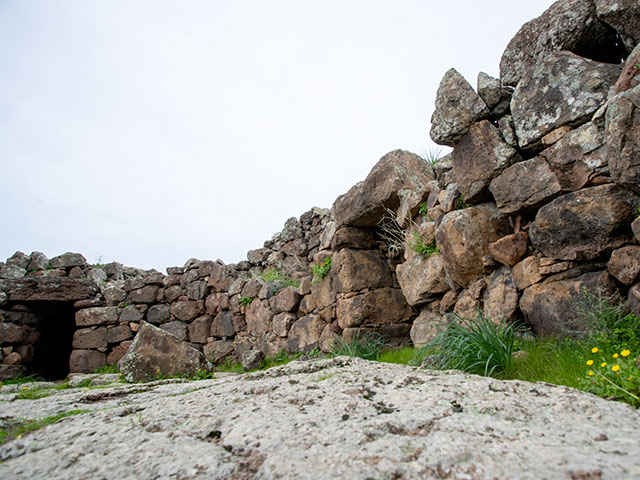 Arrivi sul bordo del pianoro trachitico di Monte Baranta e senti subito che qui non si passava per caso. Davanti a te corre una muraglia megalitica lunga quasi cento metri, fatta di massi enormi incastrati nella roccia. Proteggeva un piccolo abitato prenuragico, sei capanne di cui resta il filare di base, e un recinto torre che domina la scarpata come un baluardo. È spesso oltre sei metri, alto più di tre, con una scala che portava al cammino di ronda. Fuori dalle mura, il passo rallenta. Incontri un menhir disteso e un grande circolo megalitico, ottanta lastroni che disegnano un cerchio di dieci metri. Qui si viveva, si difendeva, si pregava. Il vento e l’orizzonte fanno il resto.